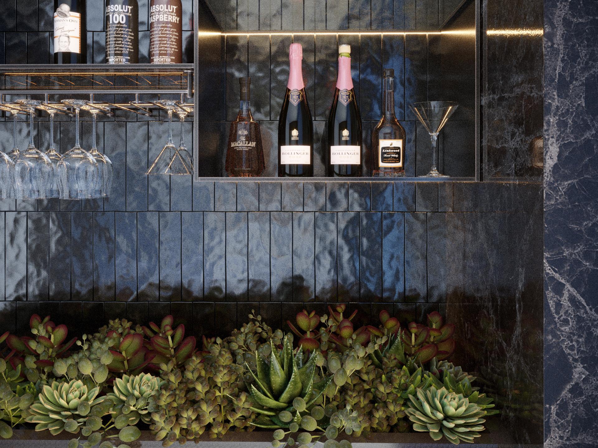 Dans une salle de bain, l’Iron crée une atmosphère feutrée et élégante, particulièrement adaptée aux ambiances minimalistes et contemporaines. En cuisine, posé en crédence, il valorise les éléments clairs comme le bois ou le marbre, accentuant un style design et actuel. Sa finition glossy reflète subtilement la lumière, ce qui équilibre son côté sombre et préserve la luminosité de la pièce.