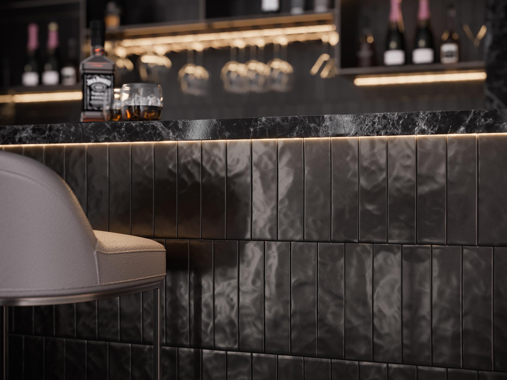 Le carrelage Luxe – L’Atelier Iron évoque l’esthétique brute et sophistiquée du métal vieilli. Sa teinte sombre, enrichie de reflets discrets, confère aux murs une profondeur qui rappelle les ambiances industrielles chic. Utilisé comme carrelage mural, il apporte du caractère et sublime les espaces modernes en jouant avec la lumière et les contrastes.