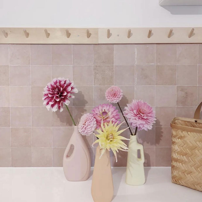 Le format rectangulaire 6,2×25 cm autorise des poses créatives : horizontale pour un rendu classique et apaisant, verticale pour accentuer la hauteur des murs, ou encore en chevrons pour une touche graphique et contemporaine. Ces possibilités décoratives renforcent le caractère polyvalent de ce carrelage, qui s’adapte aussi bien aux petits espaces qu’aux grands volumes.