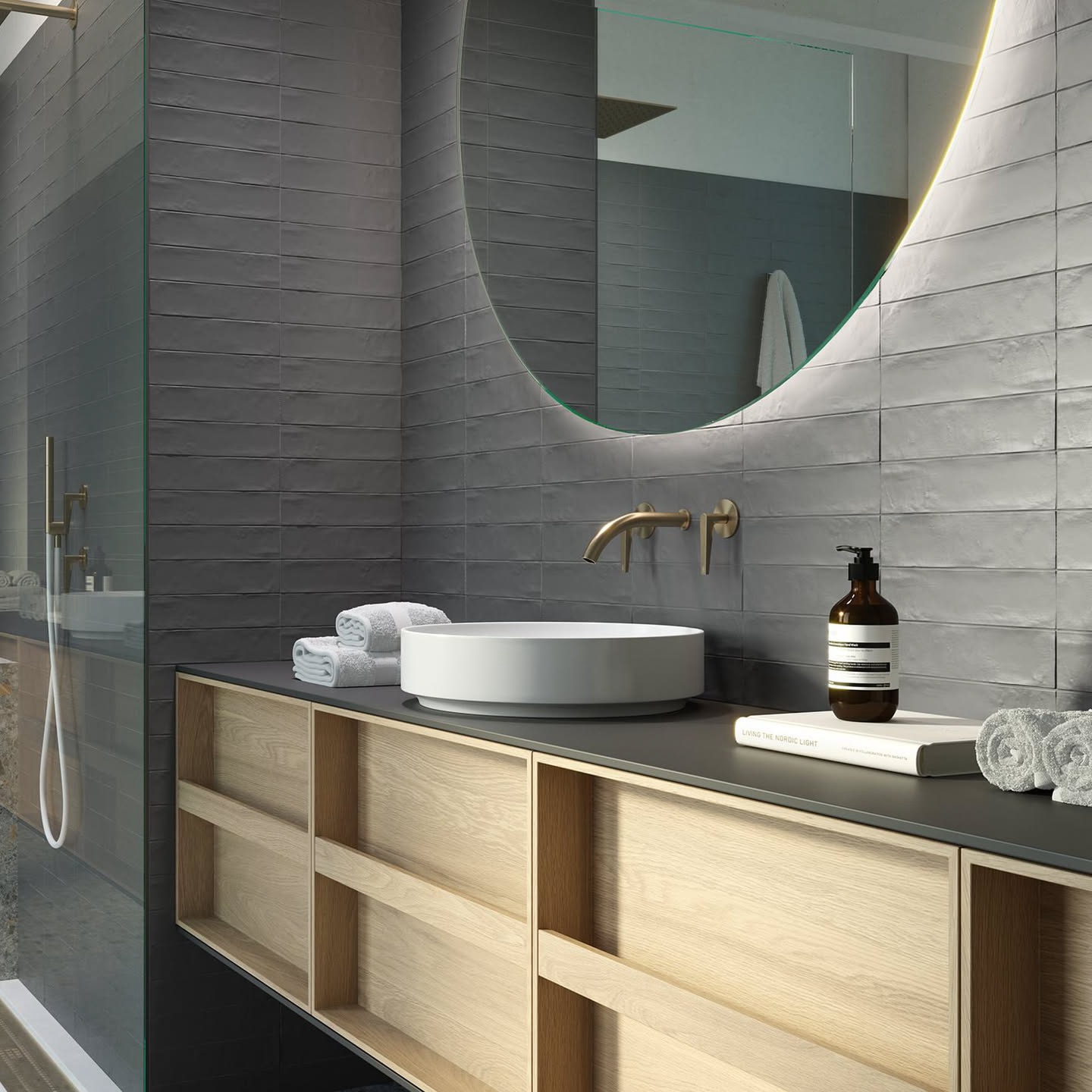 Le format 6,2×25 cm du carrelage Provence est idéal pour composer des murs et sols dynamiques. Sa forme allongée permet différentes poses : horizontale pour accentuer la largeur, verticale pour donner de la hauteur, ou en chevrons pour un rendu graphique et original. Cette modularité fait de Provence une collection adaptée aux projets décoratifs les plus variés.