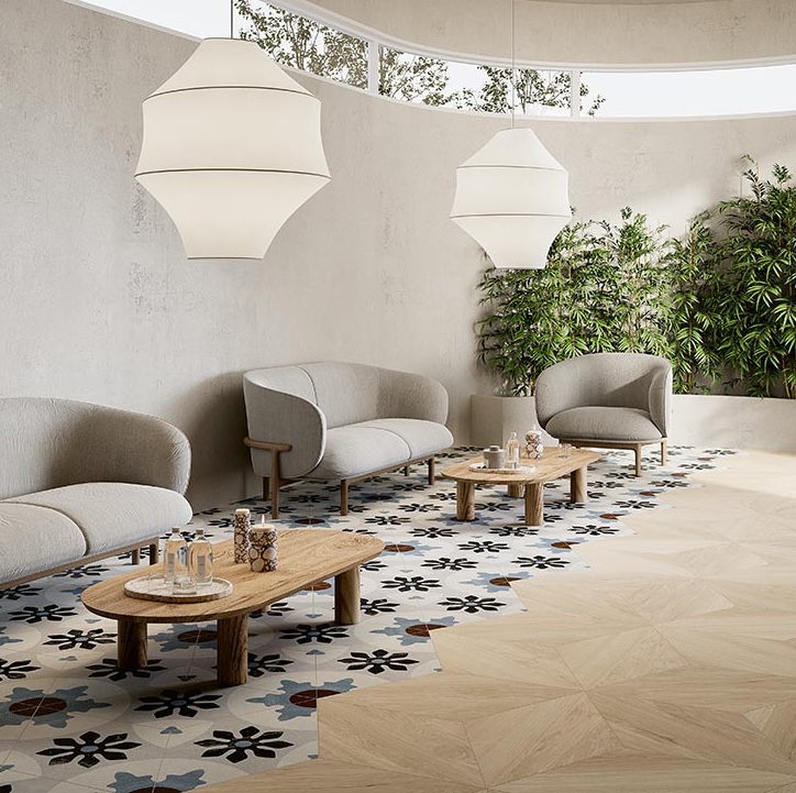 Ce carrelage permet de créer des sols et murs à forte personnalité, à la croisée du design nordique et du charme méditerranéen. Dans un salon ou une entrée, il devient un élément central du décor ; en boutique ou restaurant, il affirme un style audacieux et accueillant.