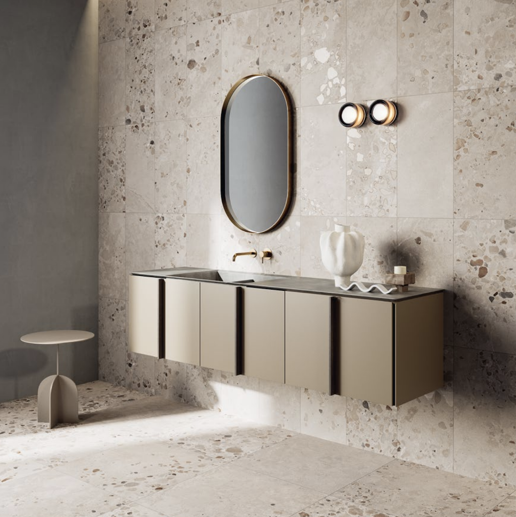 Dans un salon, ce carrelage diffuse une ambiance minérale chaleureuse. En salle de bain, il combine l’élégance du terrazzo et la praticité du grès cérame. En extérieur, ses versions antidérapantes assurent sécurité et continuité esthétique. Materia Pura illustre parfaitement comment un carrelage peut traduire l’héritage méditerranéen en un design contemporain.