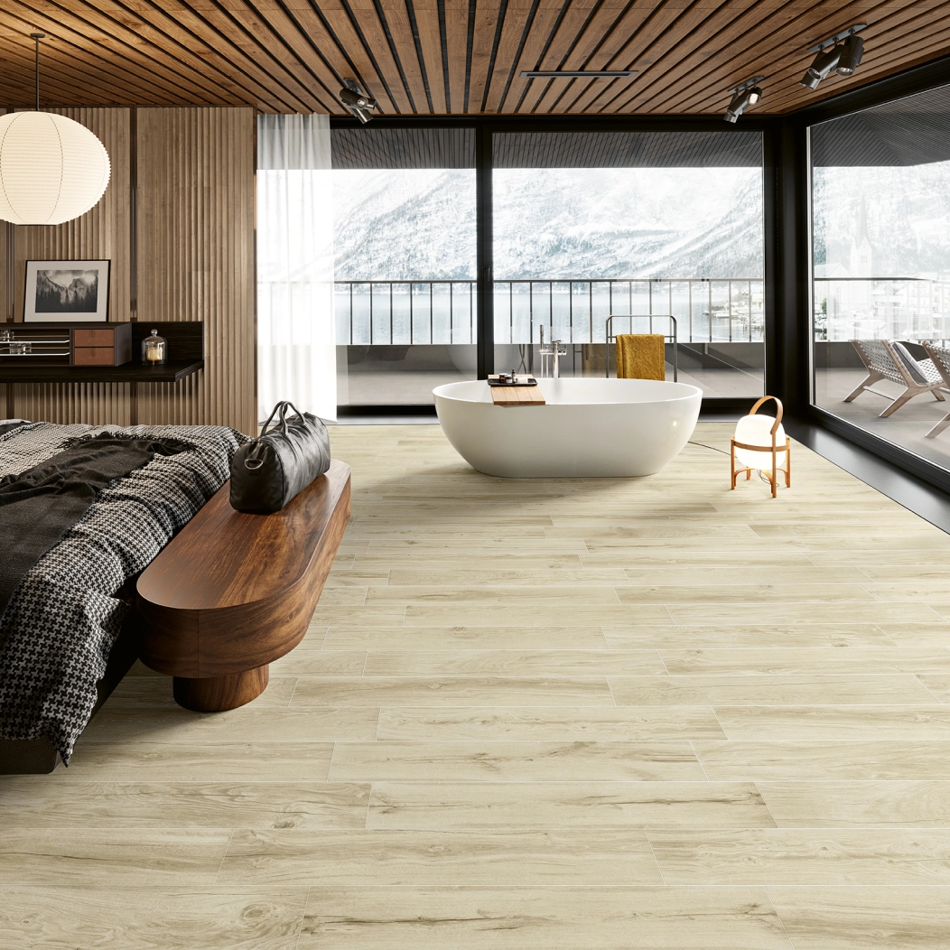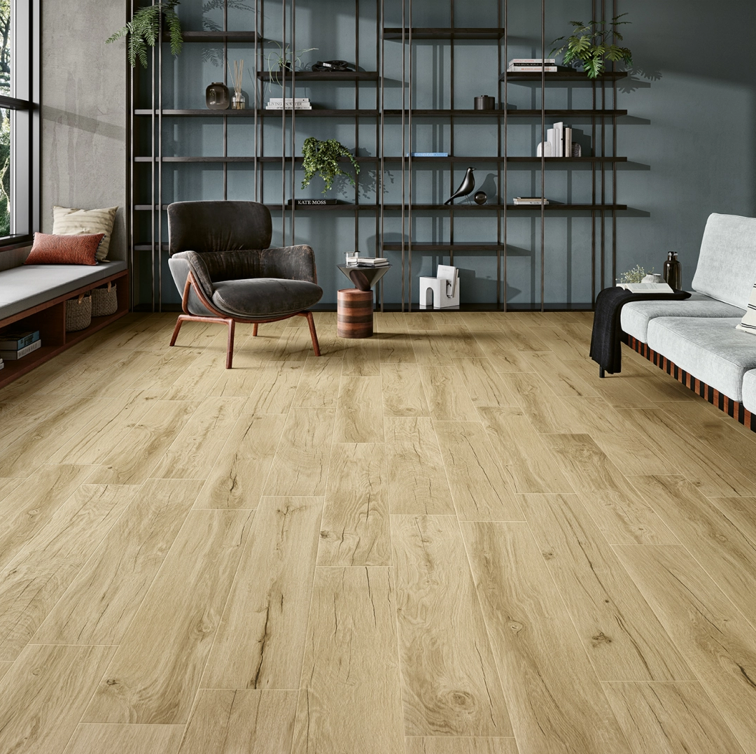 Dans un salon, il réchauffe l’ambiance et accentue la convivialité. En salle de bain, il offre la beauté du bois sans craindre l’humidité. En cuisine, il apporte un caractère naturel tout en restant facile à nettoyer. Ce carrelage séduit par sa capacité à transformer un espace en un lieu de bien-être et de sérénité.