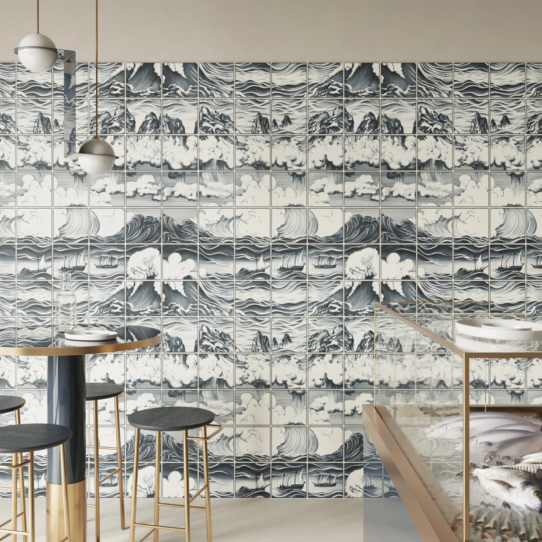 Ici, le carrelage devient un véritable support d’expression, capable de transformer un mur ou un sol en œuvre graphique.